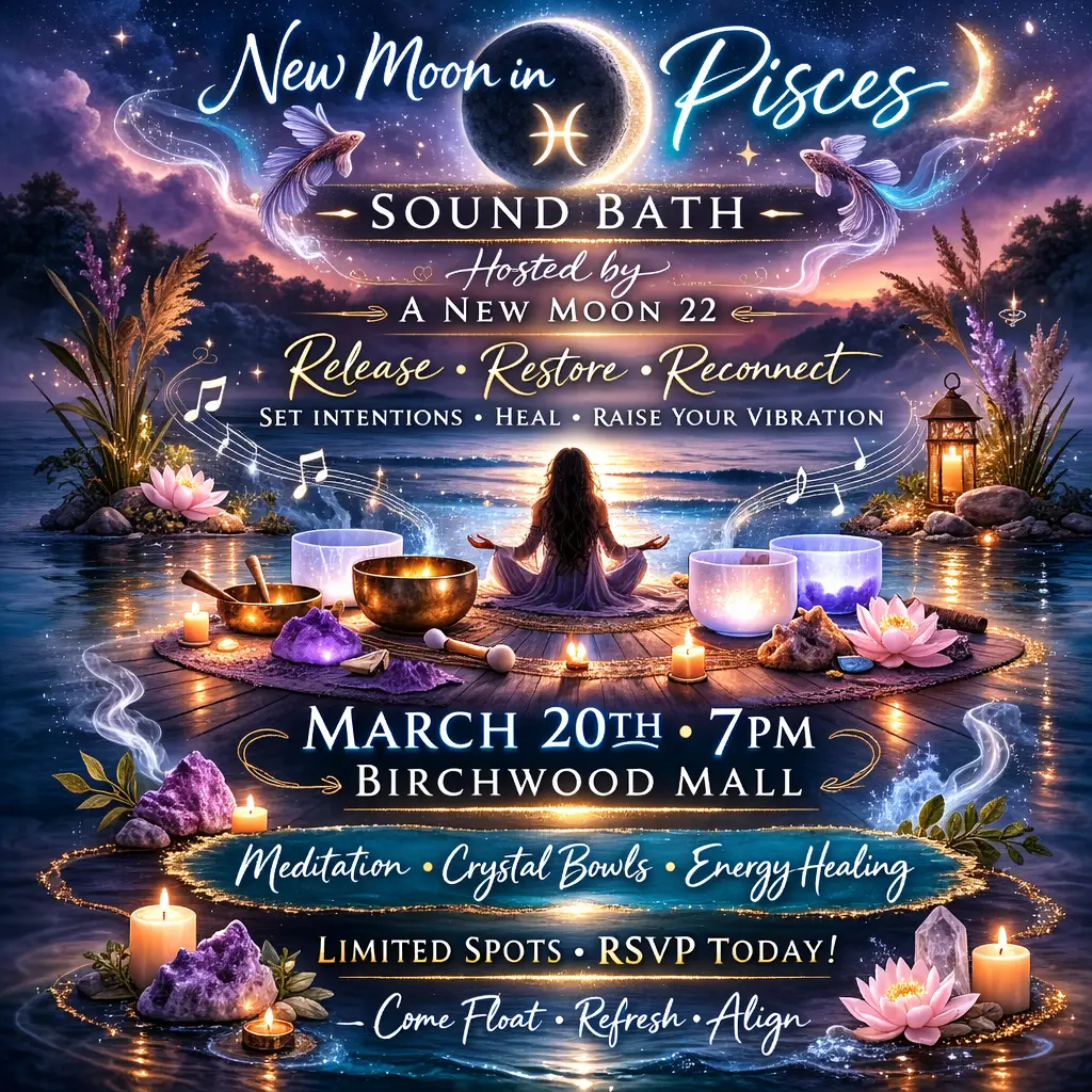 Join us for a transformative New Moon Sound Bath at A New Moon 22, where you’ll be guided through meditation, soothing crystal bowl vibrations, and gentle energy healing. This is your time to release, restore, and reconnect — leaving you grounded, refreshed, and aligned for the new lunar cycle. 💫
